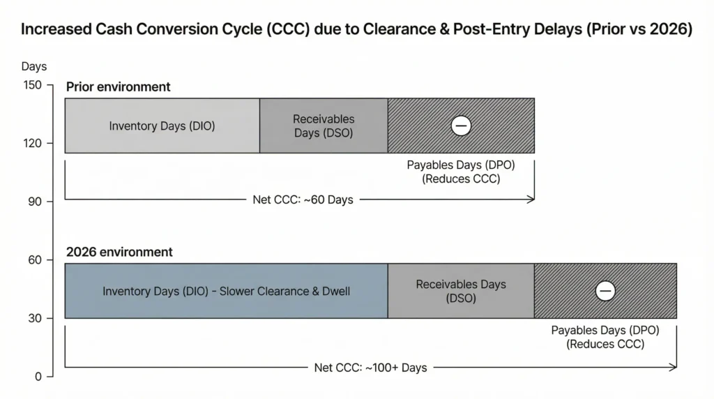 Clearance speed, IEEPA‑driven refund pressure, landed cost precision, and working capital discipline are.