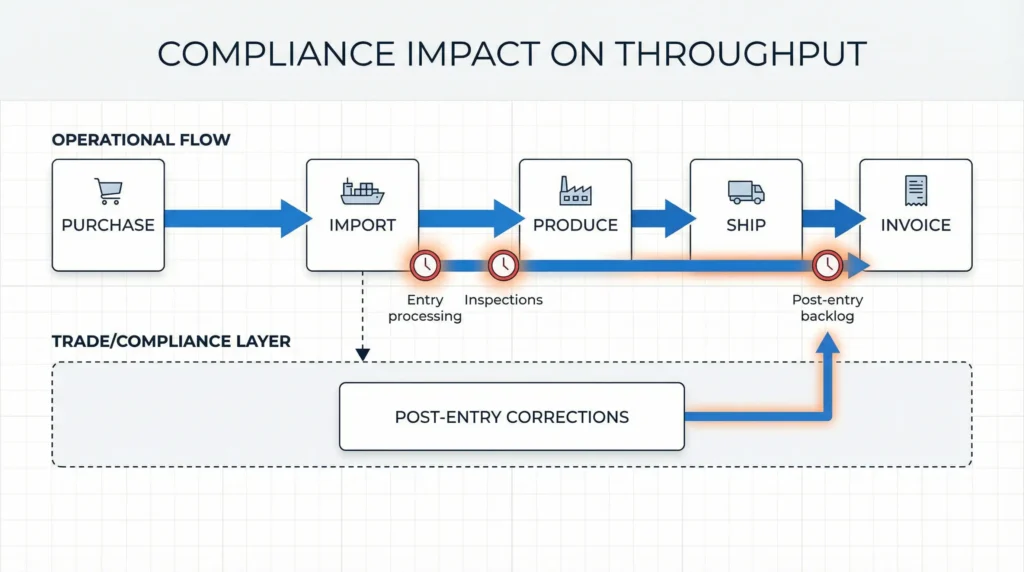 Even when freight arrives on time, clearance and post‑entry work often set the pace of production and billing.