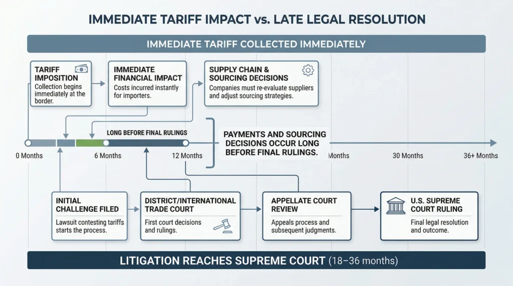 But here is the planning reality your legal team needs to absorb: that argument takes 18 to 36 months to reach the Supreme Court. Your sourcing decisions, capital allocation, and contract terms don’t wait for appellate timelines. The administration invokes. Importers pay. Litigation proceeds. Rates stay in place while the case is briefed, argued, and decided. That is exactly what happened with IEEPA…companies paid for nearly a year before the Court acted. Plan for the same dynamic here.