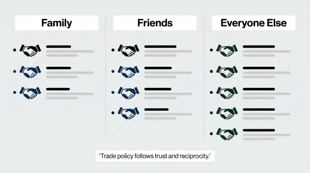 The signal was unmistakable: the United States would no longer organize trade policy around global neutrality, but around spheres of trust, dependence, and risk.
